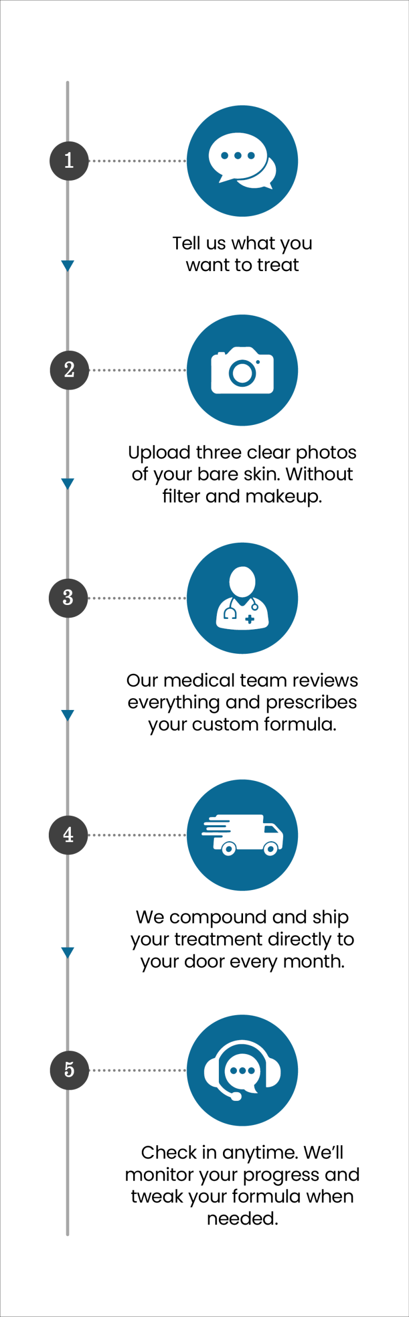 Got questions before you begin? We’ve got answers. Here’s everything you need to know about your personalised treatment from ingredients and pricing to delivery and visible results.